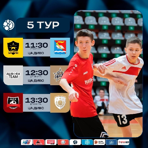 27 марта с 11:30 до 14:30 во Дворце игровых видов спорта (ДИВС) пройдут три ярких матча 5-го тура Чемпионата MatchTime среди юношей.