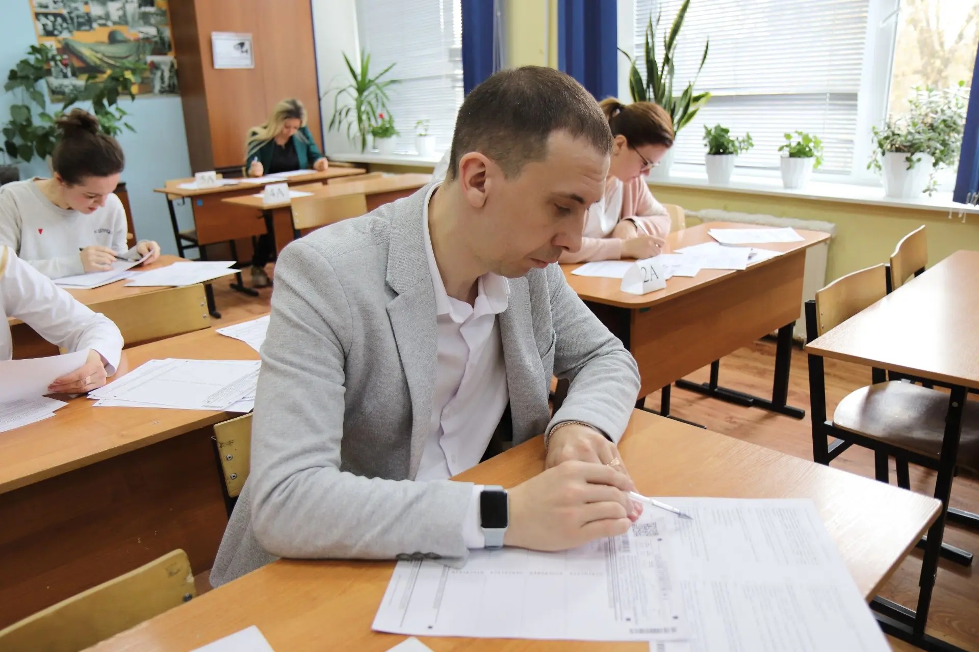 В средней школе №1 Иванова вчера царила атмосфера экзамена, но за партами сидели не выпускники, а их родители. Здесь прошла Всероссийская акция «Сдаём вместе. День сдачи ЕГЭ родителями».
