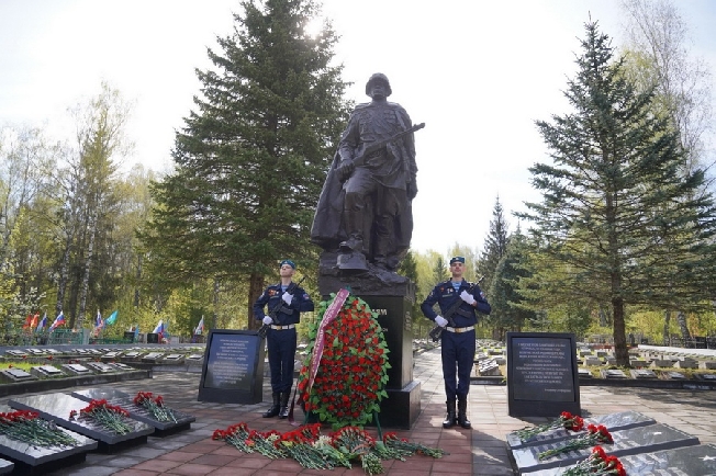 Жители региона несут цветы к воинским мемориалам и захоронениям